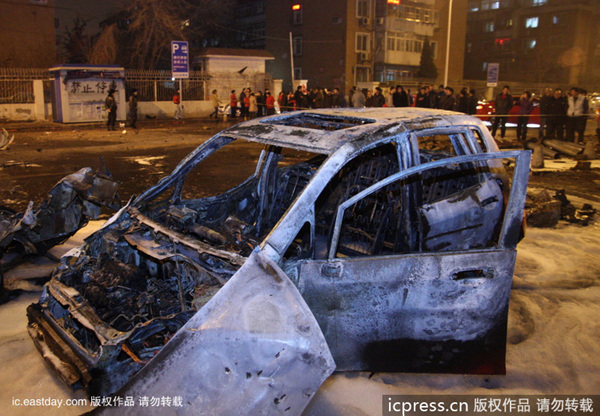 天津:元宵佳节酿悲剧 一炮炸毁四辆车(1)(2)