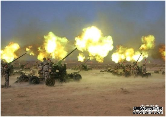 • 防空火炮阵地密集开火