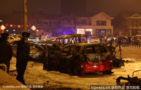 天津:元宵佳节酿悲剧 一炮炸毁四辆车(1)(2)