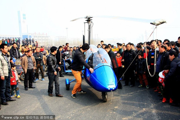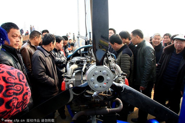 河南小伙开自造价值近百万飞机赴庙会(1)(4)