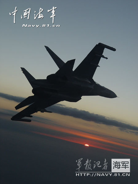 近日,中国海军航空兵战斗轰炸机部队进行了拂晓攻击训练,参训机型为俄制苏-30MKK2战机。图为我军苏-30KK2机群凌晨出动。