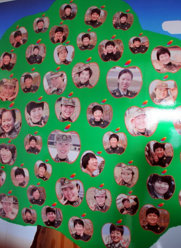 “常规导弹第一旅”女子导弹发射连的笑脸墙。新华军事记者杨雷摄新华网消息(记者杨雷):老师、医生、画家…… 26岁的谢凌霞小时候的梦想犹如满天繁星,但她做梦也没有想到的是,她最终走入了军营,成为了国之利器的执剑者。
